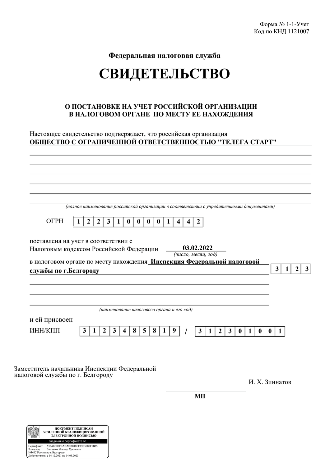 ОГРН 1223100001442